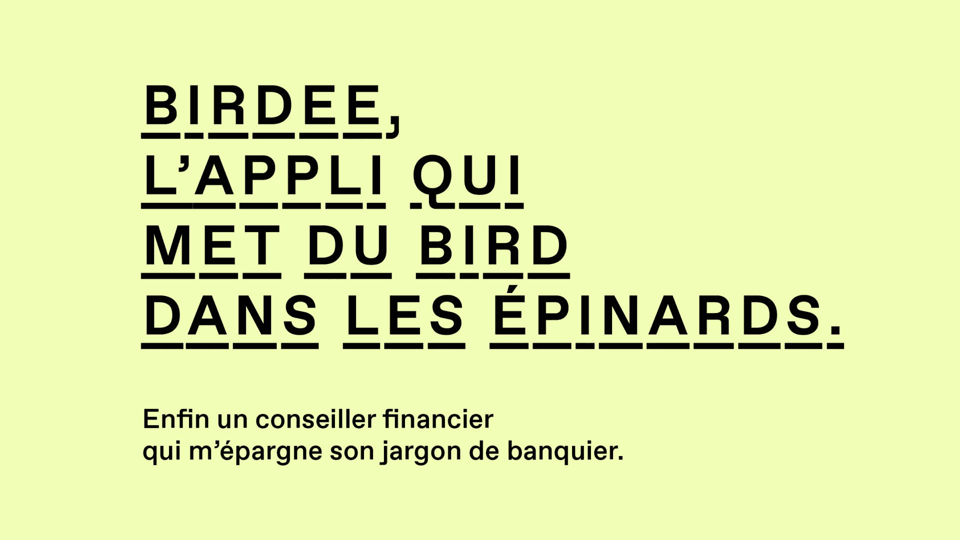 Un territoire de communication propriétaire où le mot « Bird » vient remplacer l’investissement. Au même titre que faire un “paypal” ou un “lydia”, Birdee devient un verbe de marque.