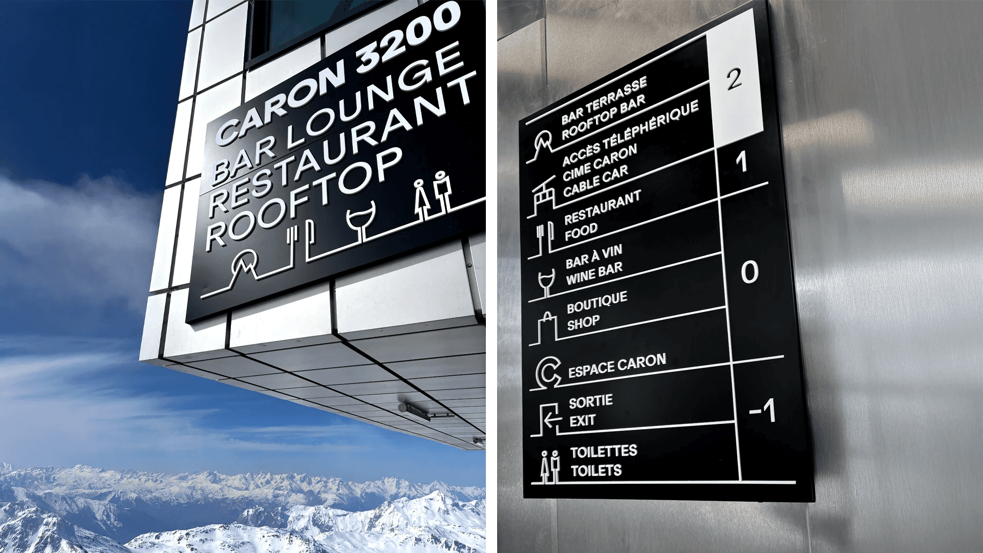 Une identité épurée et intemporelle : à l'intérieur, le visiteur reste connecté à la haute montagne sans dénaturer l'esprit du sommet. L'identité visuelle reflète cette philosophie par sa sobriété et sa durabilité.